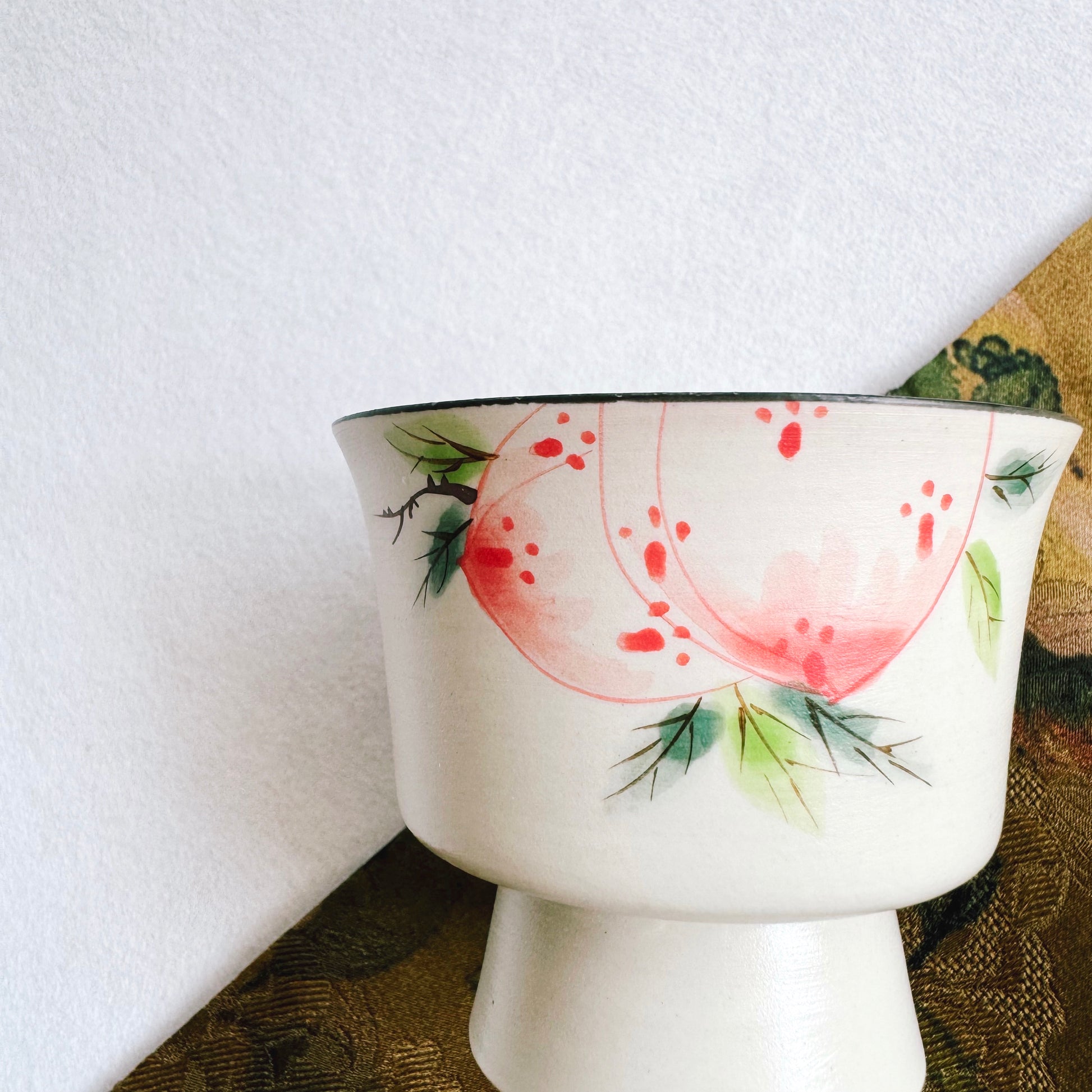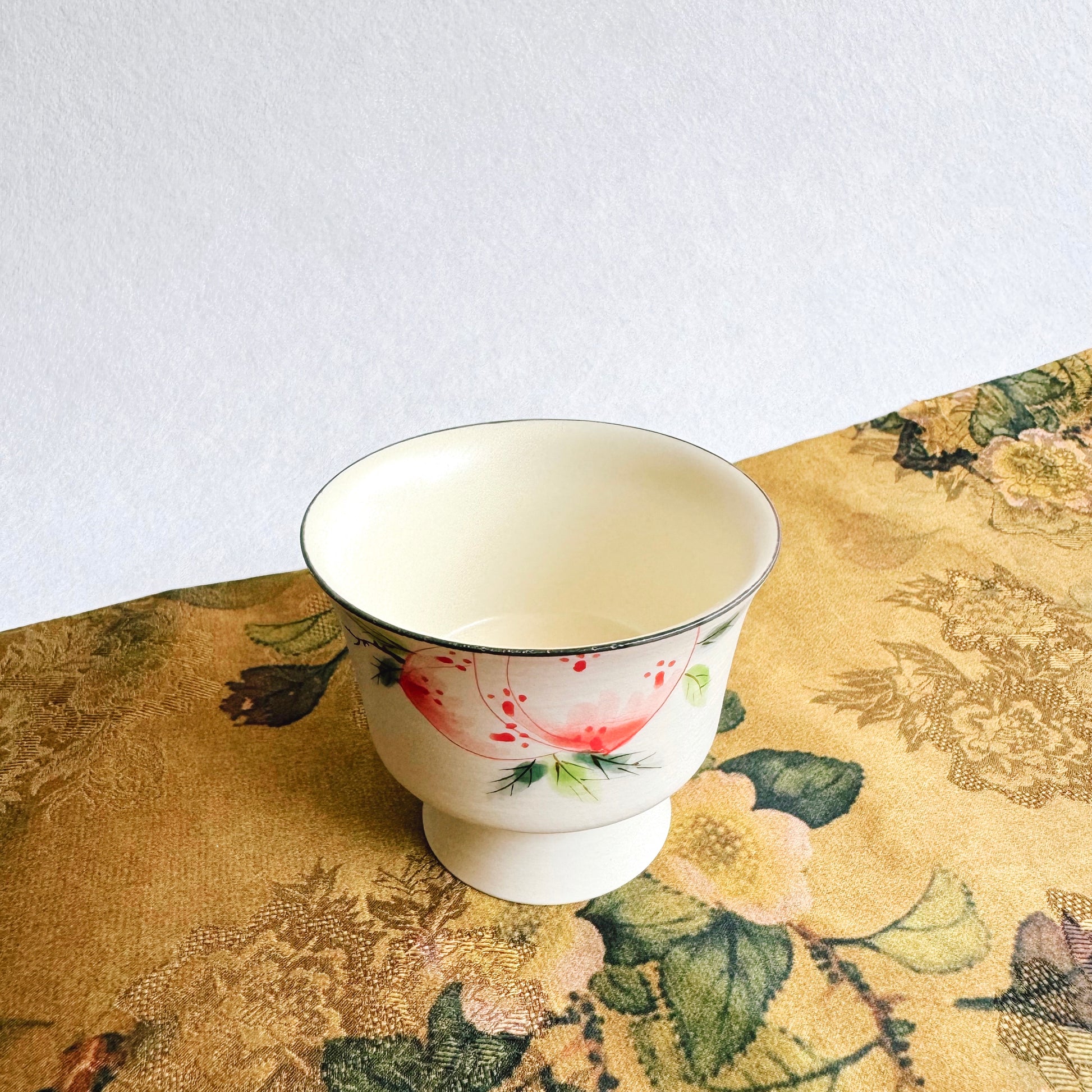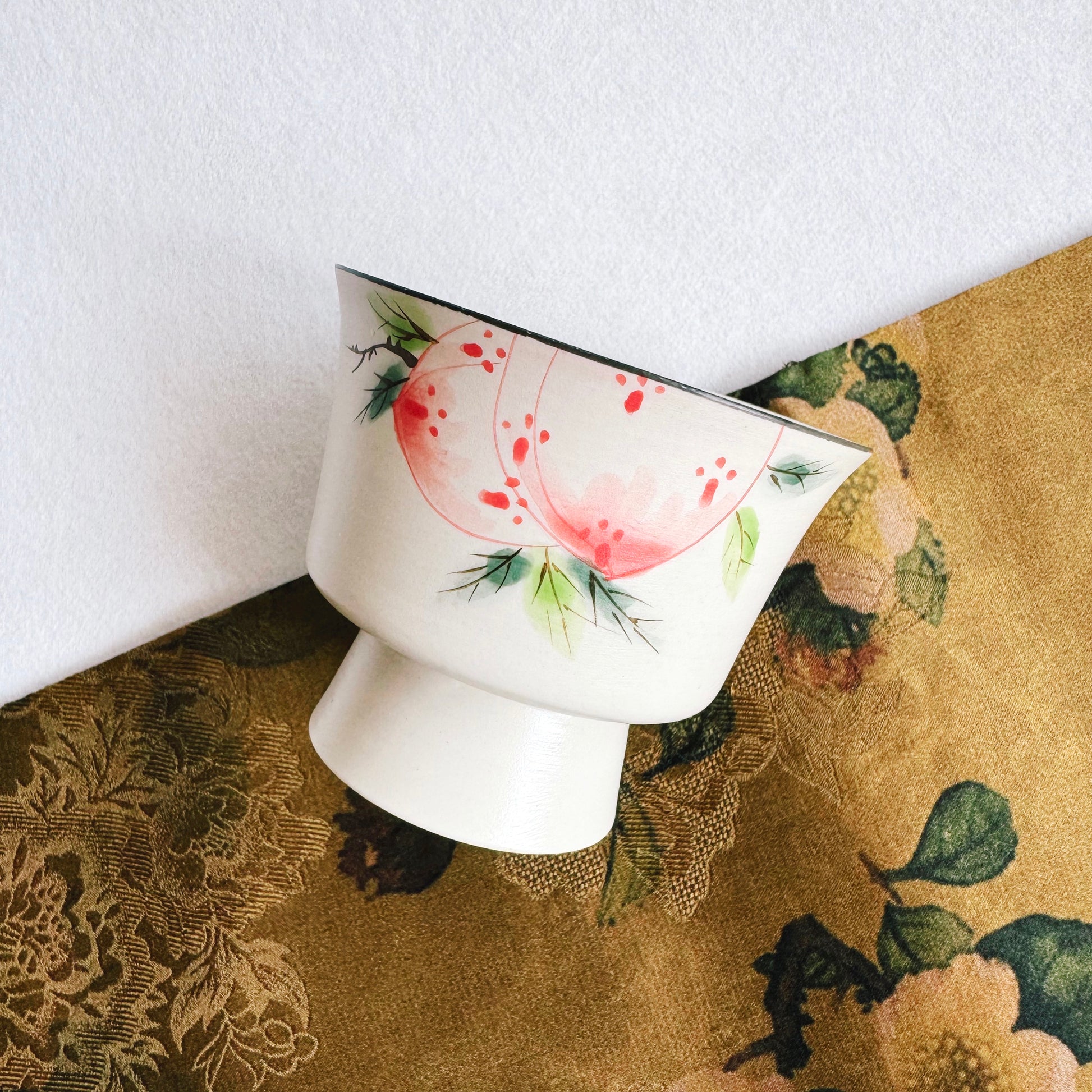 This exquisite teacup is crafted using the traditional "Kohiki" technique, which imparts a rustic and authentic texture through its intentional imperfections. The glaze is adorned with soft pastel peach motifs, with colors blending naturally and seamlessly to create a lifelike appearance. The peaches look as fresh and vibrant as real fruits, symbolizing longevity and vitality.