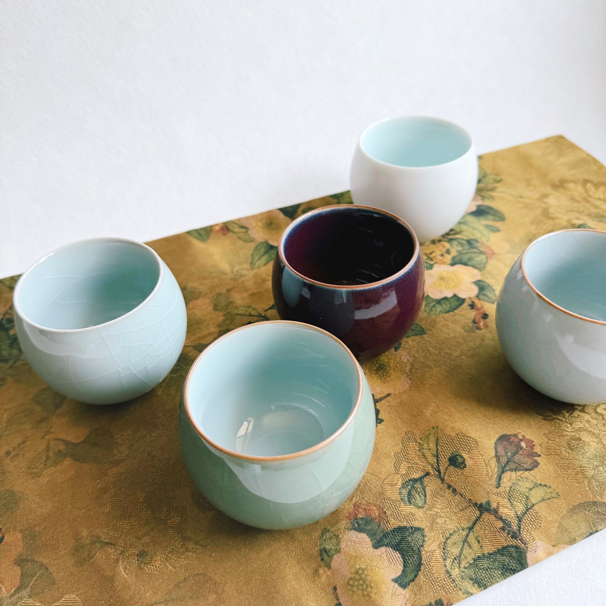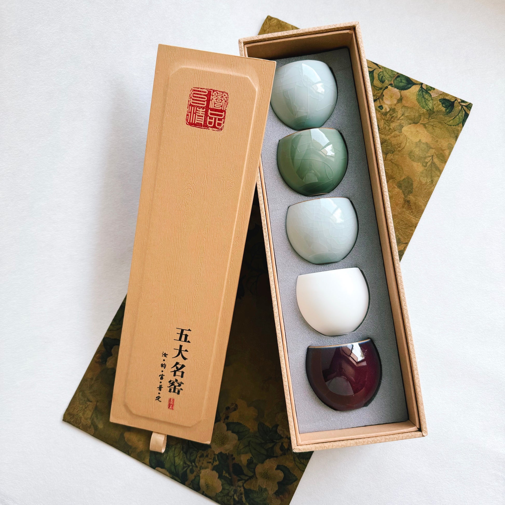 Celebrate the rich heritage of Chinese ceramics with this exquisite Five Famous Kilns Tea Cup Set. Each cup in this set represents one of the renowned historical kilns: Guan, Ge, Ding, Ru, and Jun kilns, each with its unique characteristics and artistic legacy.