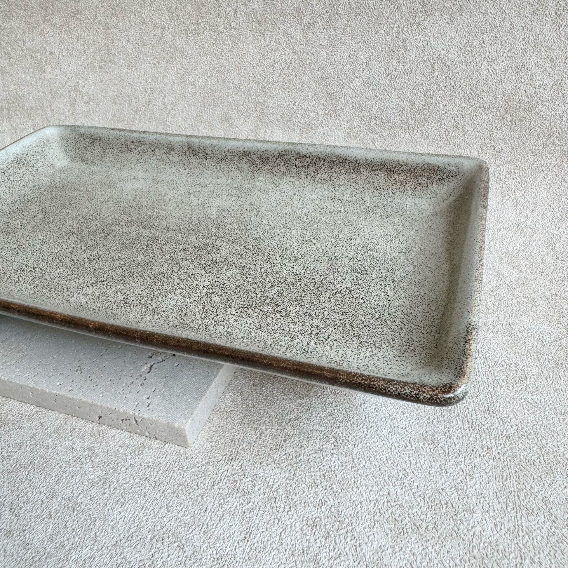 Introducing our rustic ceramic platter, a stunning piece that brings a touch of artisanal charm to your dining experience. This rectangular platter features an earthy glaze with a subtle, textured finish, evoking a sense of natural elegance. Its minimalist design and muted tones make it a versatile addition to any table setting, from casual gatherings to formal dinners.