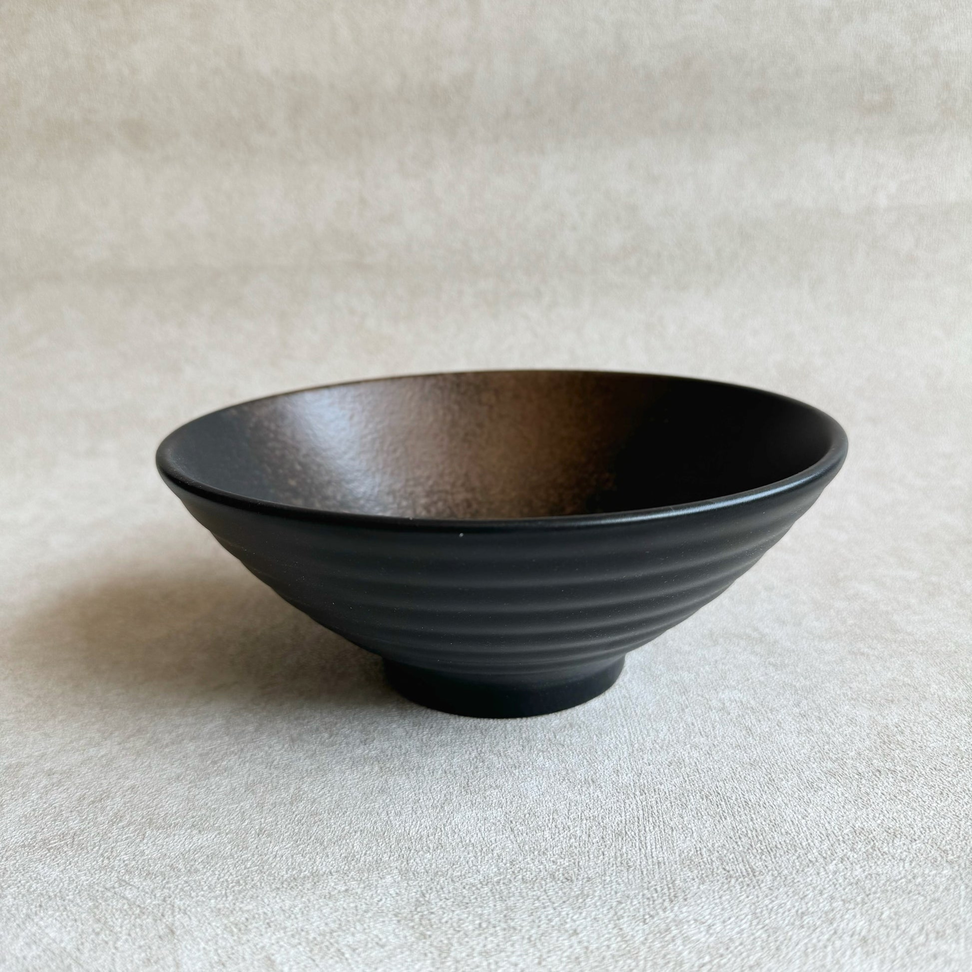 The exterior is adorned with subtle, horizontal ridges that add texture and a touch of contemporary style. Crafted from high-quality ceramic, this bowl is designed for durability and everyday use. Its wide, shallow shape is perfect for serving a variety of dishes, including soups, salads, noodles, and desserts. The smooth, matte surface ensures an elegant presentation, making each meal feel special.